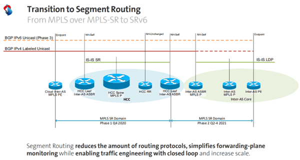 • He explained the various phases of the process, from MPLS to SR-MPLS and finally to SRv6.
