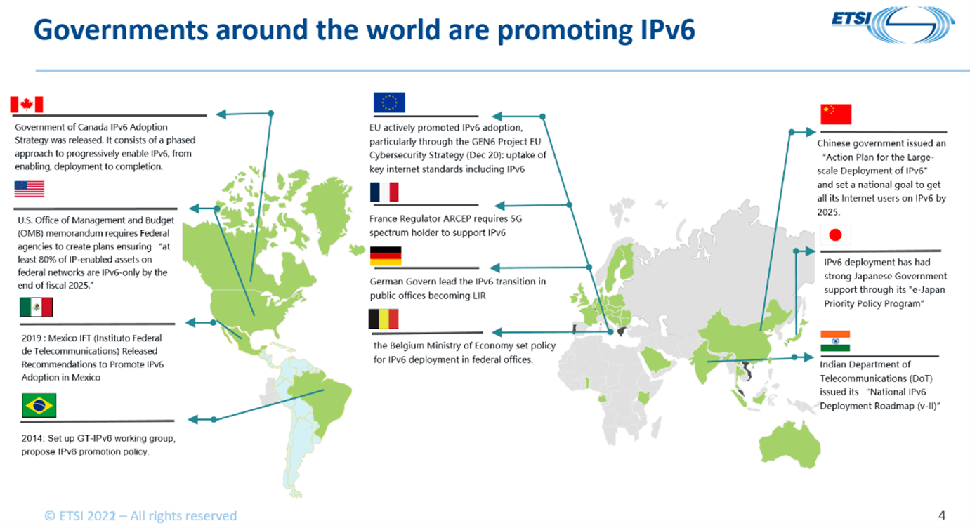 Approved by ETSI in October 2020, ETSI ISG IPE has the prime goal to produce best practices to promote global IPv6 adoption and describe emerging business scenarios to accelerate global IPv6 enhanced innovations.